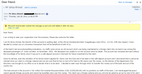 As my Sam Mendoza SMS Scam post continues with its record breaking comments streak, I will be posting another variant of scam and this time its the classic 419 email scam. I got it from my hotmail account a few days ago and I am sharing it as an public service and awareness campaign to all readers of my blog.